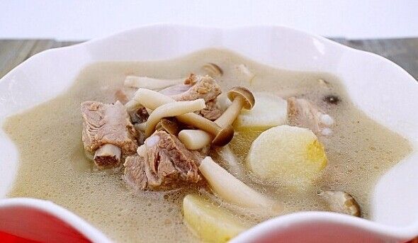 6. 再加入蟹味菇,適量鹽,大火幾分鐘后轉小火燜燉至湯濃肉酥。